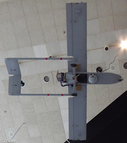 Inevitablemente, este chisme me parece un aeromodelo grandote y un poco feo. Pero resulta que es algo más serio. El AAI RQ-7 Shadow es un UAV o dron o vehículo aéreo "sin persona", que lo define mejor que "no tripulado", ya que lo están. En la práctica es un avioncito radiocontrolado monomotor de hélice muy chico (mide 4,3 m de envergadura, pesa unos mínimos 170 kg, y se pasea por los aires a unos 130 km/h), que se ha convertido en el sistema de vigilancia y reconocimiento estándar del ejército y los marines yanquis, además de otros.